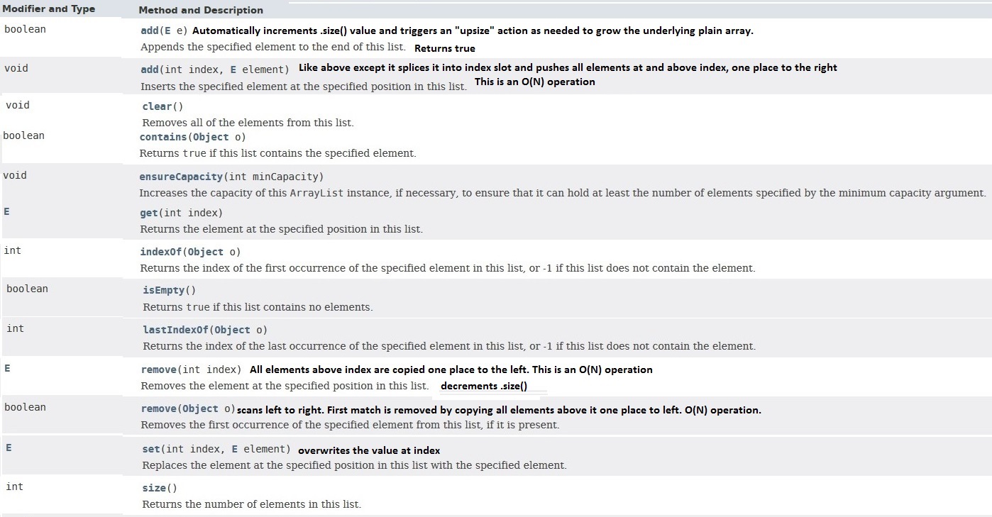 Let's look at the ArrayList API to see the members of the the ArrayList.