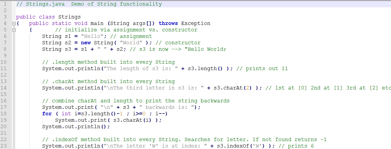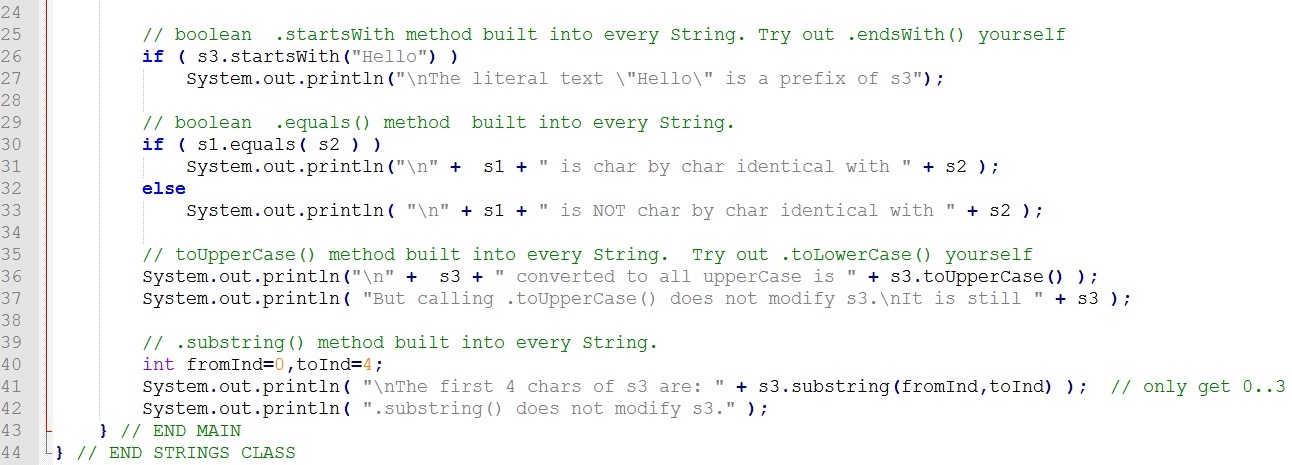 Here is a program Strings.java that demonstrate some of the built in String operations.